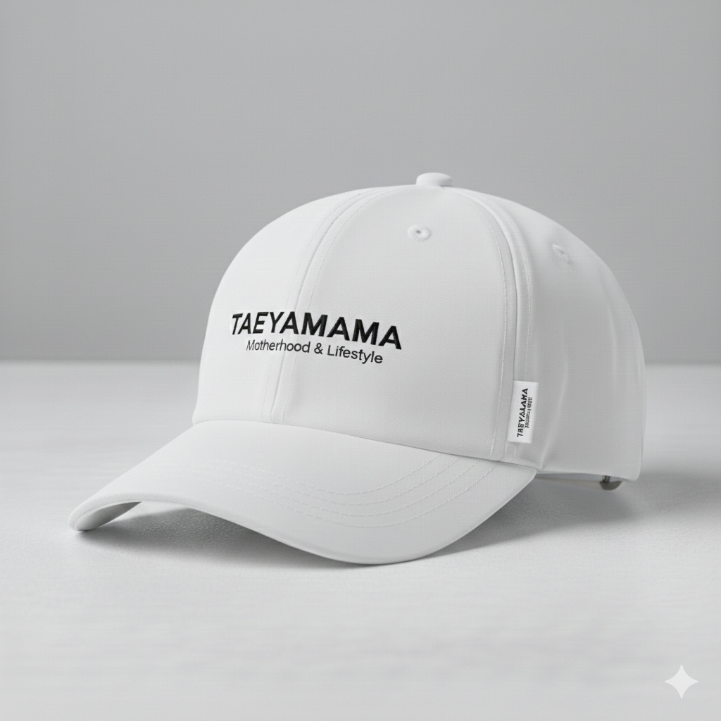 • Frontal: Bordado de alta densidad con el logo TAEYAMAMA y el lema Motherhood & Lifestyle.